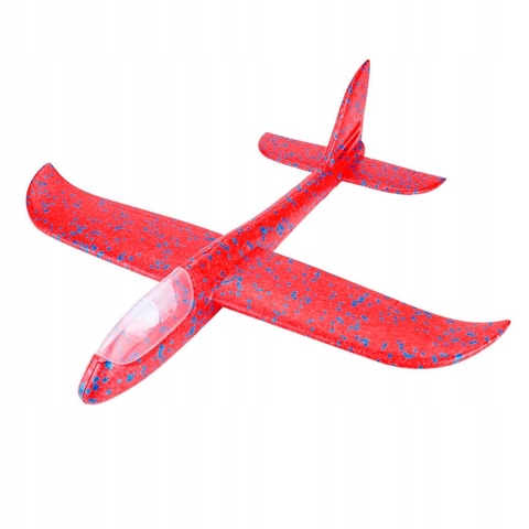 Детский самолётик летающий 48 сантиметров (пенопласт) Светящаяся кабина красный