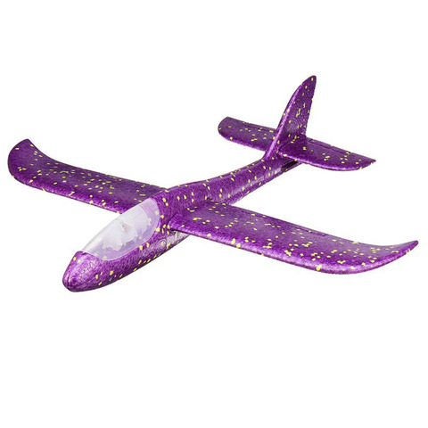Детский самолётик летающий 48 сантиметров (пенопласт) фиолетовый "Светящаяся кабина"