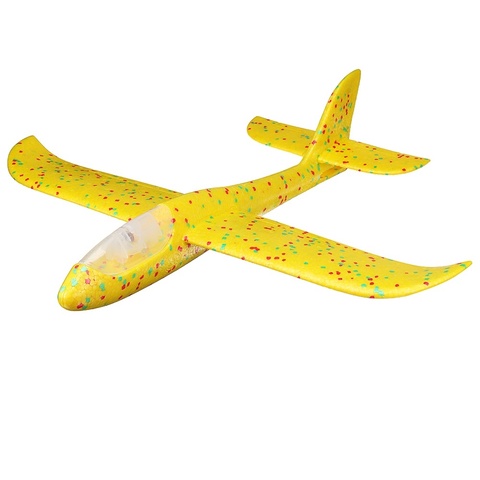 Детский самолётик летающий 48 сантиметров (пенопласт) жёлтый "Светящаяся кабина"