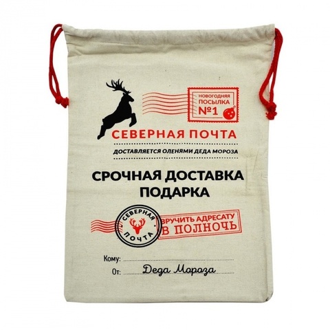 Подарочный мешок Деда Мороза Северная почта (25х35 см)