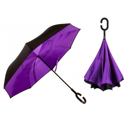 Зонт-наоборот. 22 модные расцветки. Оригинал по самой доступной цене. Прочный - не ломается от ветра. Без брызг - поставь и суши. Не промокнув. Вся влага внутри, не мочит одежду и окружающих. Спицы спрятаны под ткань. Вес 580 г, купол 124 см, высота 80 см. Тип открытия - механический. Материал - понжи, сталь, полипропилен.