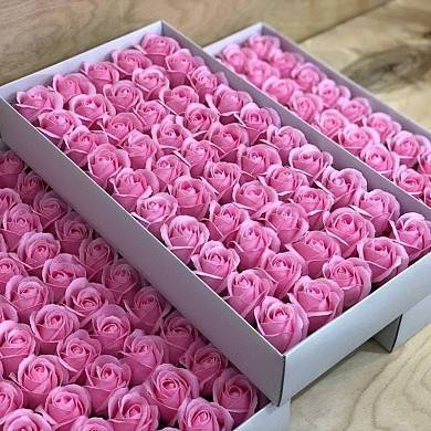 Ароматные мыльные бутоны роз в коробке розовые (50 штук)