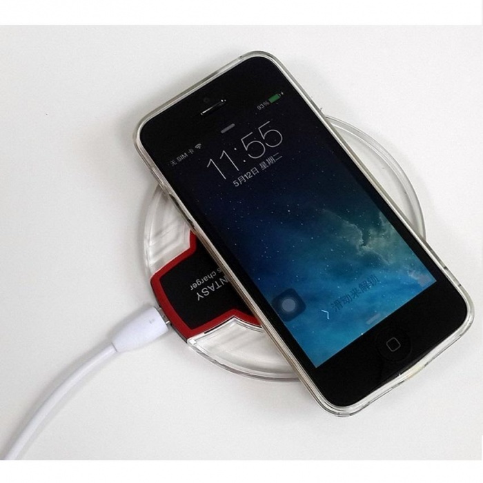 Беспроводная зарядка Fantasy для Android. В комплект входит платформа,USB провод и плата. Плата фиксируется к телефону через зарядный порт и убирается под чехол. Платформа подключается через usb провод к компьютеру/ноутбуку/нетбуку. Как только смартфон соприкоснется с платформой, зарядка начнется.