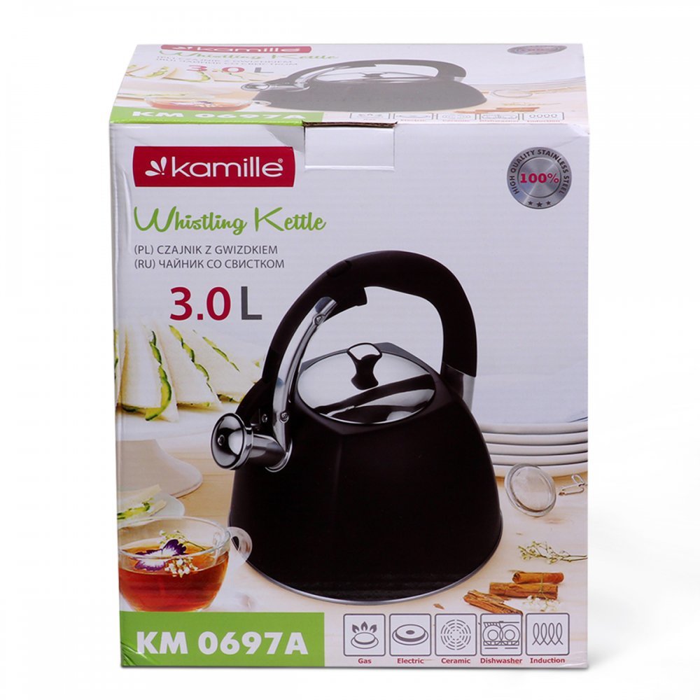 Материал: нержавеющая сталь. Материал крышки: нержавеющая сталь. Цвет: бронза. Общий объем: 3л. Диметр (по внешнему дну) 21см. Высота (с ручкой) 24.5см. Тип ручки: фиксированная. Материал ручки: бакелит с покрытием "soft-touch". Цвет ручки: черный. Свисток: есть. Полировка металла: сатин. Подходит для мытья в посудомоечной машине: да. Упаковка: цветная картонная коробка 25.5*22*22см