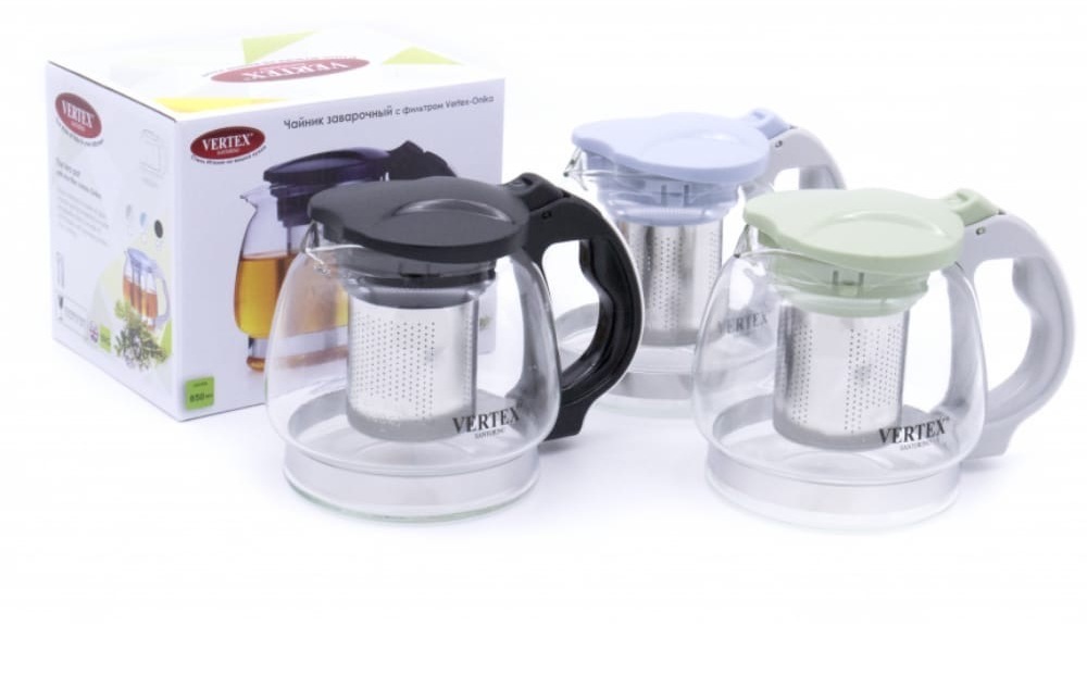 Чайник стеклянный заварочный термостойкий 850 мл 8052- VS *12*.
