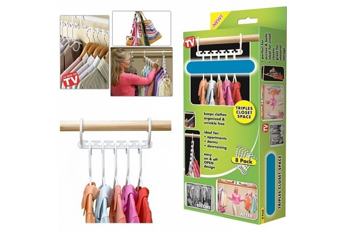Используя чудо-вешалку Triples Closet Space, вы можете моментально в три раза увеличить используемый объем вашего шкафа для одежды! И при этом ваши вещи не помнутся и будут легко доступны.