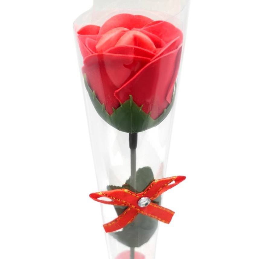Декоративная мыльная роза и в подарочной плёнке с бантиком красная