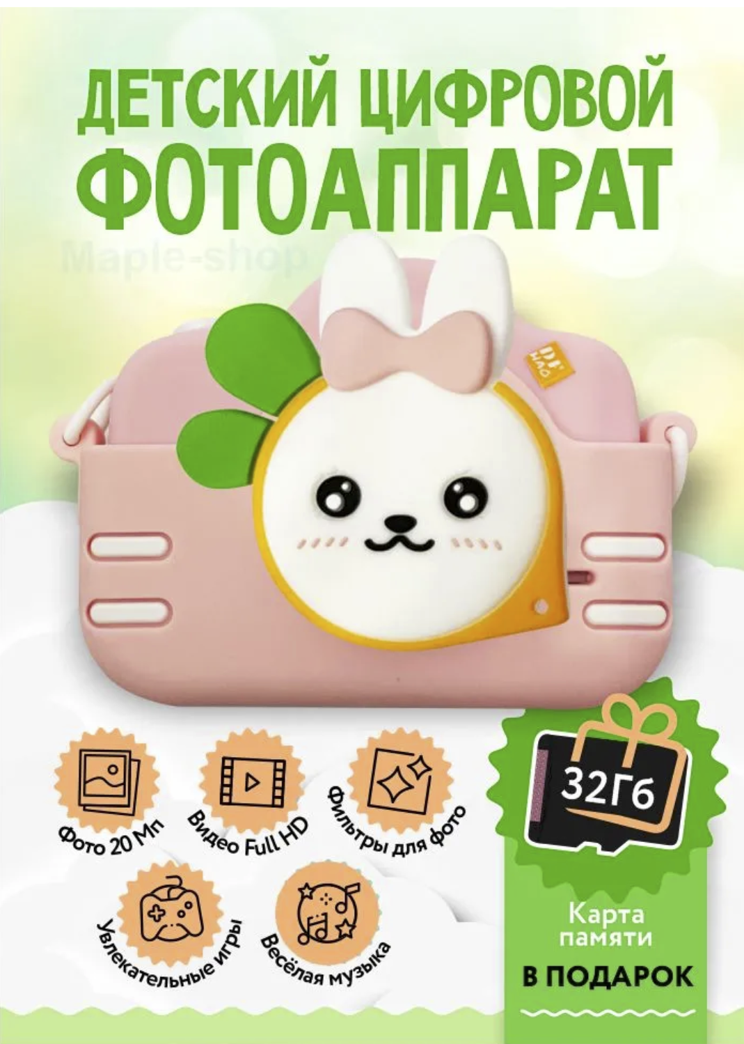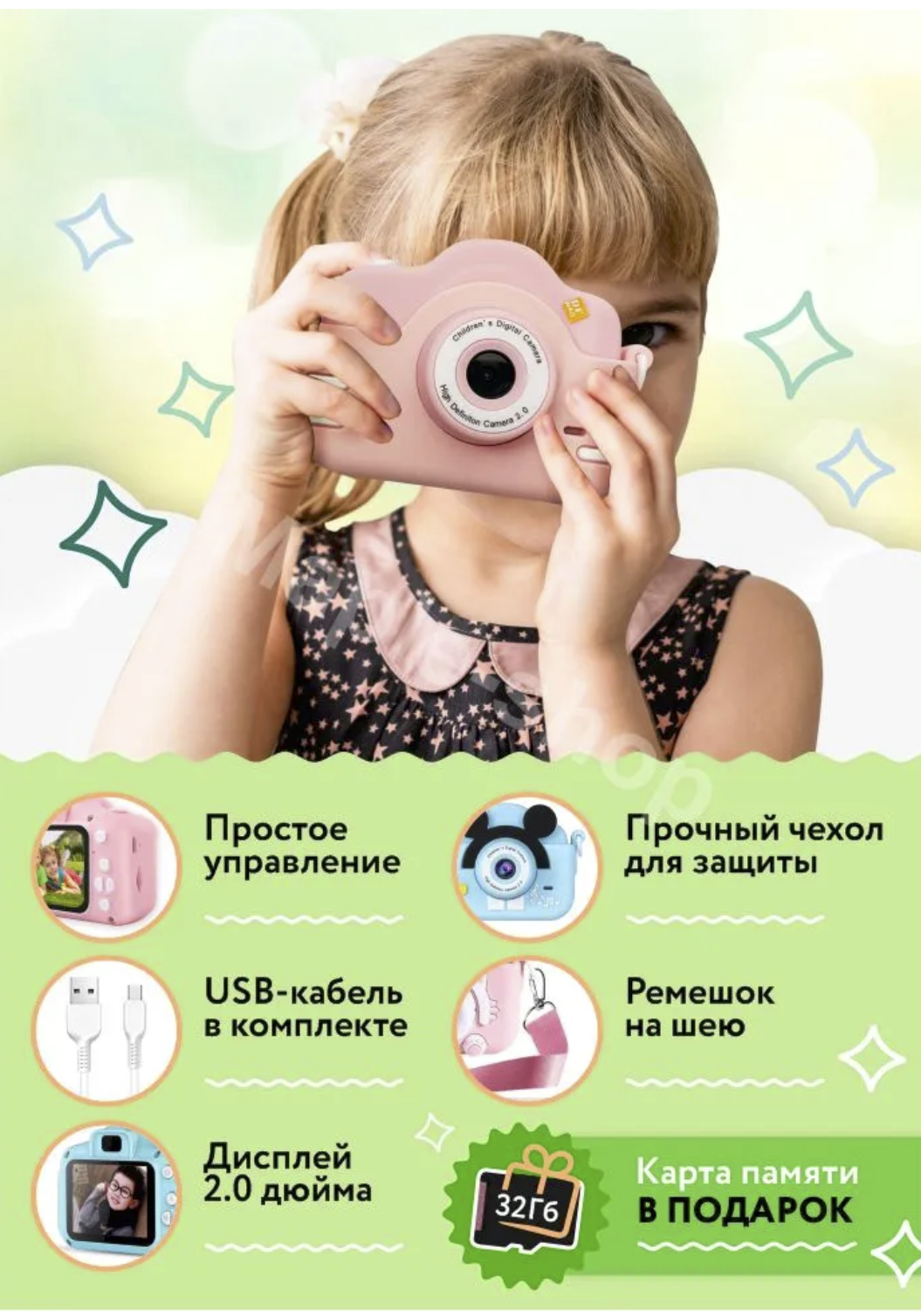 Яркий и надежный чехол защитит детский фотоаппарат от пыли и ударов, а зарядка осуществляется через usb. Веселые рамки, фильтры и маски разнообразят процесс съемки, а встроенные игры развлекут ребенка в перерывах или в долгой дороге. Шнурок на шею предотвратит падение и не даст фотоаппарату потеряться. Все детские фотоаппараты поддерживают русский язык и имеют меню на русском языке.