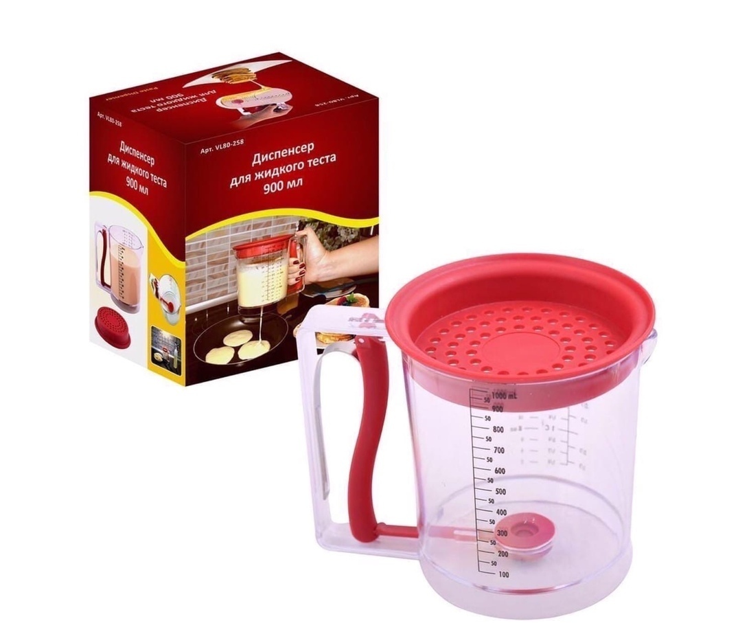 Диспенсер для жидкого теста предназначен для дозирования теста в формы для выпечки или непосредственно на противень или сковороду. С помощью него можно быстро и аккуратно разлить жидкое тесто в нужном количестве, не против при этом ни капли. Он станет незаменимым помощником на Вашей кухне при выпечке кексов, маффинов, оладий и другой выпечки. Преимущества использования диспенсера очевидны: минимум используемой посуды, отсутствие брызг при разливании теста, четкая дозировка теста.