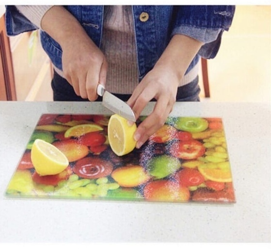 Стеклянная разделочная доска — это практичный аксессуар для нарезки продуктов, стильное украшение кухни и эффектная подставка для блюд. Также разделочную доску из стекла можно использовать для эффектной презентации кулинарных шедевров. Стеклянная поверхность нейтрально относится к посторонним ароматам. Она не впитывает запахи и не поглощает влагу, сохраняет первоначальные свойства в течение всего периода эксплуатации. Уход за изделием прост — достаточно промыть его под теплой водой и насухо вытереть салфеткой.