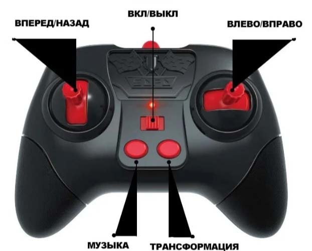 Дальность действия управления примерно 45 метров. Аккумулятор емкостью 120мАч заряжается за 3-4 часа и позволяет наслаждаться автомобилем и поражать зрителей невероятными трюками  в течение 40 минут. Эта модель не будет неделями простаивать на полке. Этот мощный полноприводный внедорожник, трансформирующийся  по мановению руки, создан для трюков и преодоления самого сложного бездорожья.