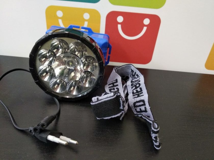 А это весьма полезное приспособление для тех, кто ходит в походы или работает в темноте. При занятых руках удобно иметь источник света на голове. Светло именно там, куда направлен взгляд. Крепим с помощью эластичного ремня фонарь на лбу, включаем его кнопкой снизу и работаем, подсвечивая нужное пространство. Кстати, угол наклона света еще и регулируется, — основной корпус со светодиодами подвижный, его можно наклонять на 90 градусов.