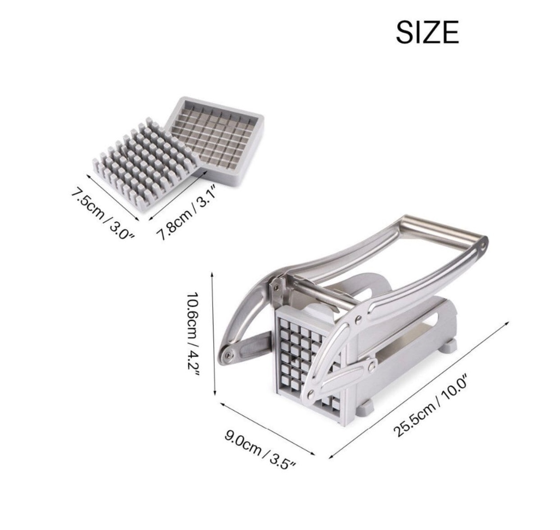 Картофелерезка – представляет собой компактный и удобный современный прибор для резки картофеля фри, который значительно сокращает время нарезания продукта. Данное устройство позволяет красиво и ровно нарезать необходимое количество картофеля или любых других овощей и фруктов. В конструкции используются ножи из высококачественной стали, которые обеспечивают хорошую и легкую производительность нарезки. Potato Chipper позволяет самостоятельно регулировать величину нарезаемых ломтиков при помощи двух сменных насадок.