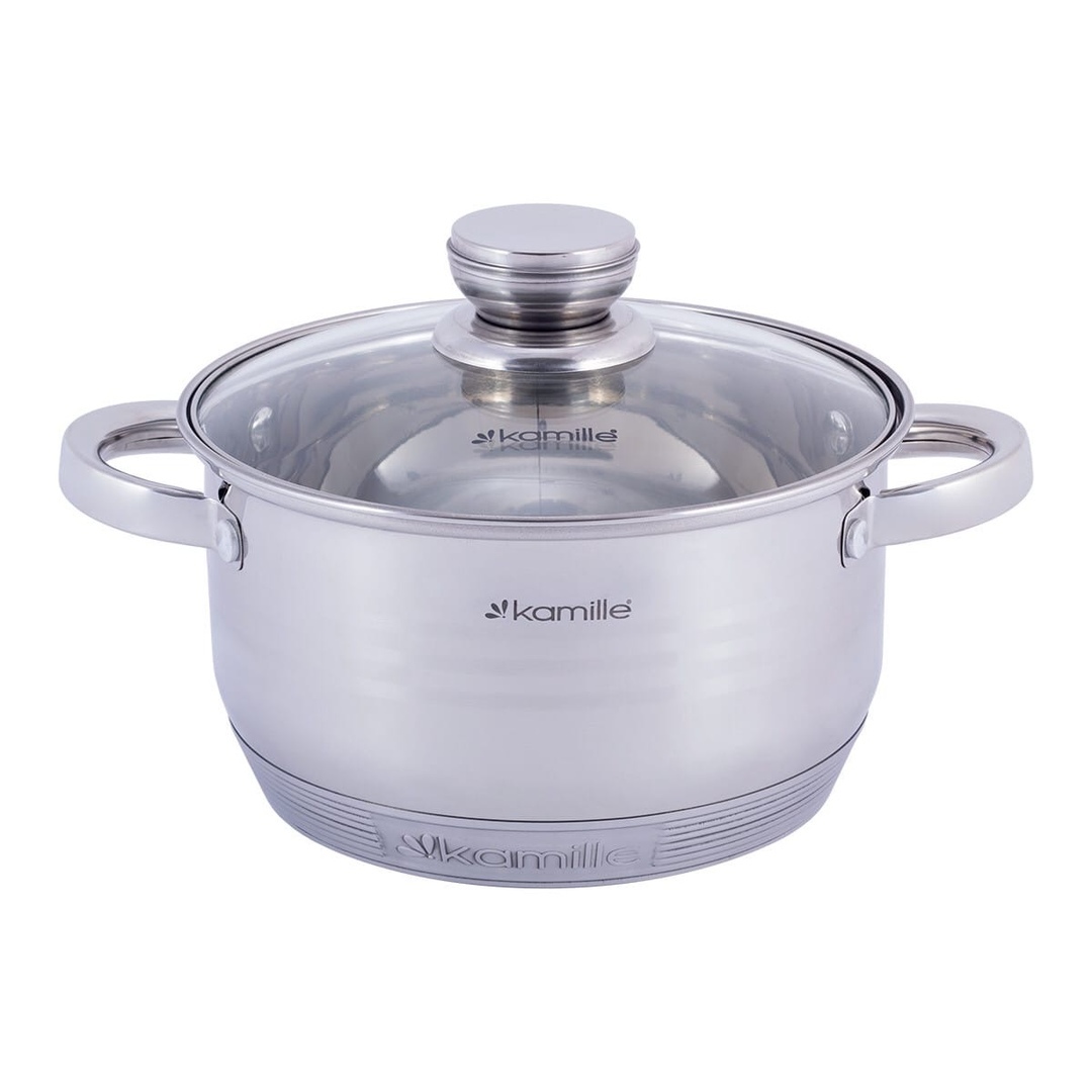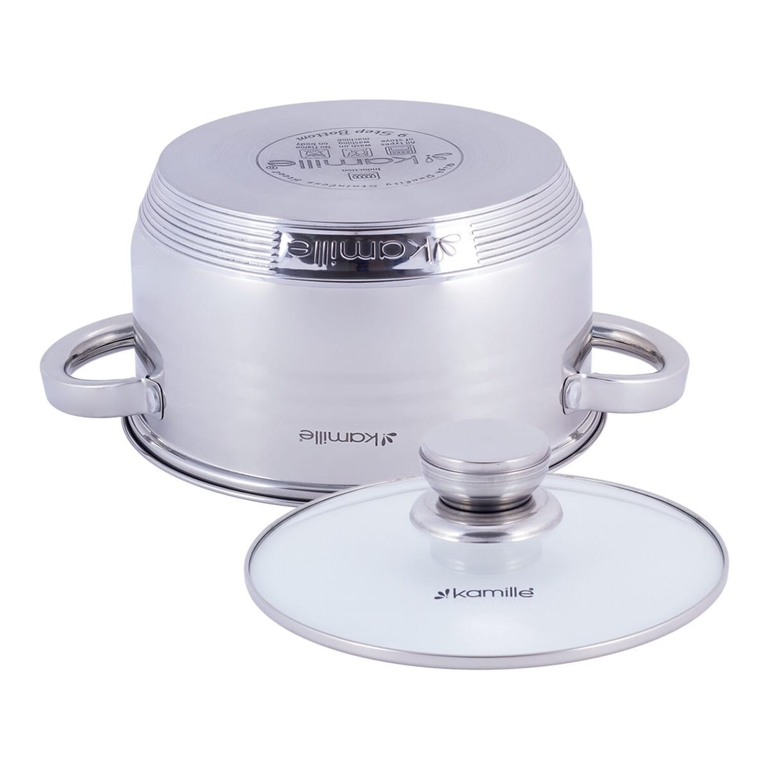 Материал: нержавеющая сталь. Крышка: жаропрочное стекло. Внутренний диаметр: 24см. Высота: 13,8см. Объем: 5л. Тип дна: 3-х слойное индукционное. Мерная шкала: есть. Способ крепления ручек: клепочное соединение. Тип ручек: полые. Крышка с отверстием для выхода пара: да. Полировка металла: сатин. Тип плиты: электрическая, стеклокерамическая, индукционная, газовая. Подходит для мытья в посудомоечной машине: да. Упаковка: цветная картонная коробка 30*16,5*26см.