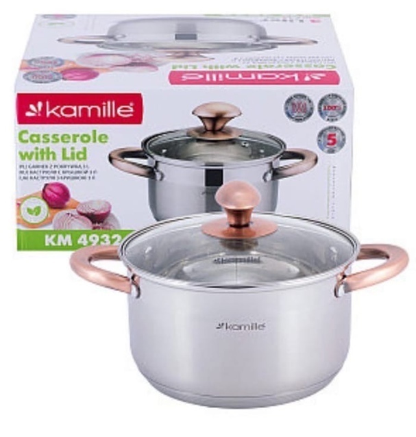 Кастрюля Kamille — нужная и незаменимая вещь на Вашей кухне. Кастрюля выполнена из качественных материалов с использованием современных технологий производства. Такая кастрюля имеет прекрасный внешний вид, оснащена 5-слойным индукционным дном и отличается высокой прочностью и долговечностью в использовании. Благодаря своим эргономичным свойствам, кастрюля будет служить Вам очень долго и принесет только удовольствие от использования.