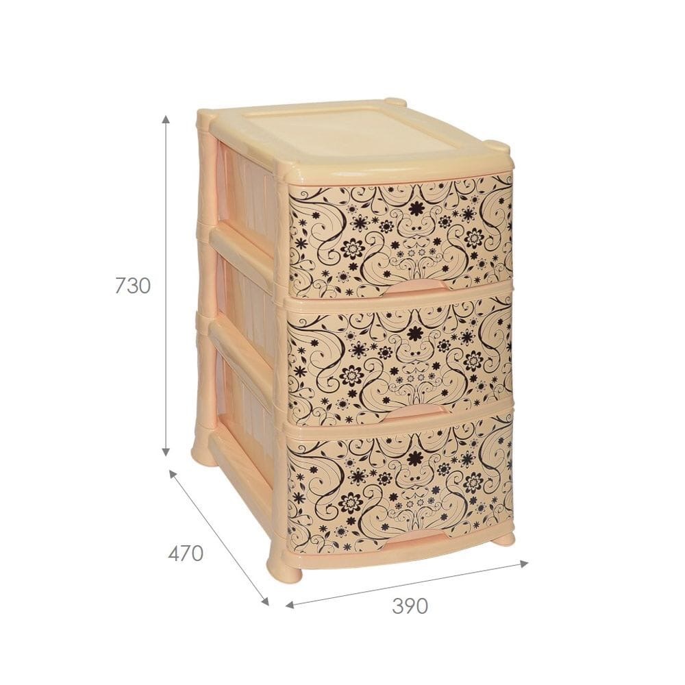 Комод из пищевого пластика с тремя выдвижными ящиками предназначен для хранения вещей и продуктов питания и гармонично впишется в интерьер любой комнаты. Легкий и вместительный комод поможет обеспечить порядок, избавит от разбросанных игрушек или одежды, убережет продукты от пыли и заветривания. Передние панели комода декорированы по технологии IML (вплавляемая этикетка) для создания индивидуального стиля. Не рекомендуется размещение пластикового комода вблизи батарей центрального отопления и электрических обогревателей.