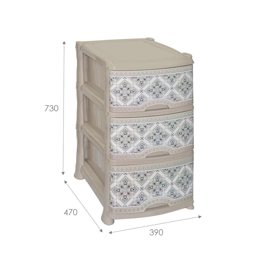 Комод из пищевого пластика с тремя выдвижными ящиками предназначен для хранения вещей и продуктов питания и гармонично впишется в интерьер любой комнаты. Легкий и вместительный комод поможет обеспечить порядок, избавит от разбросанных игрушек или одежды, убережет продукты от пыли и заветривания. Передние панели комода декорированы по технологии IML (вплавляемая этикетка) для создания индивидуального стиля. Не рекомендуется размещение пластикового комода вблизи батарей центрального отопления и электрических обогревателей.
