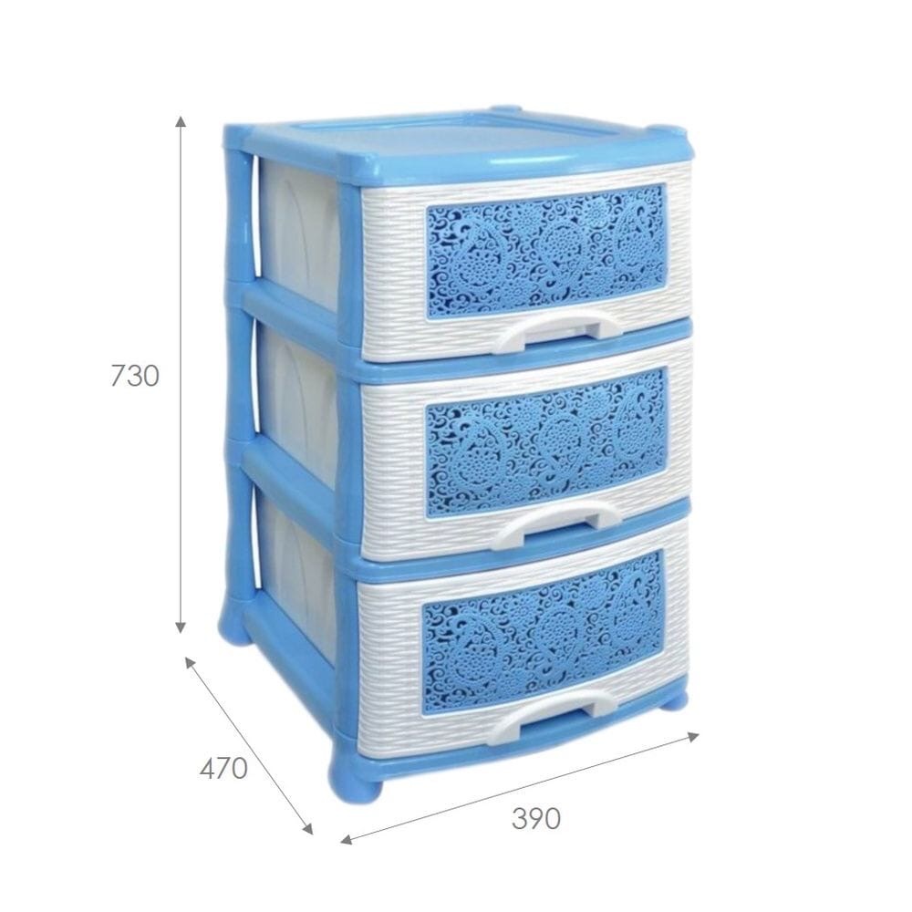 Комод из пищевого пластика с тремя выдвижными ящиками предназначен для хранения вещей и продуктов питания и гармонично впишется в интерьер любой комнаты. Легкий и вместительный комод поможет обеспечить порядок, избавит от разбросанных игрушек или одежды, убережет продукты от пыли и заветривания. Узор на передних панелях придаст индивидуальность и подарит настроение. Не рекомендуется размещение пластикового комода вблизи батарей центрального отопления и электрических обогревателей.