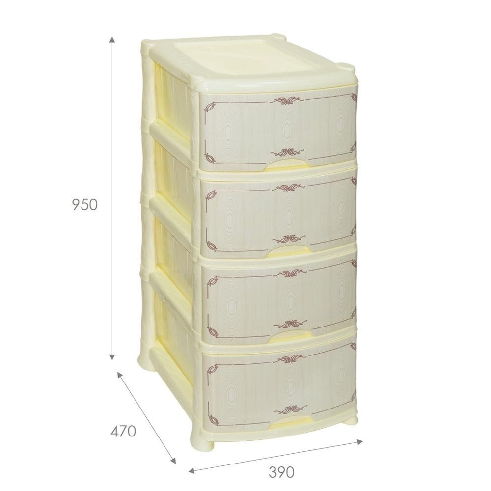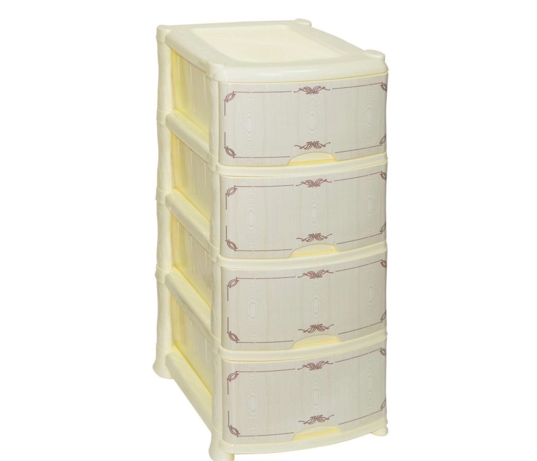 Комод из пищевого пластика с четырьмя выдвижными ящиками предназначен для хранения вещей и продуктов питания и гармонично впишется в интерьер любой комнаты. Легкий и вместительный комод поможет обеспечить порядок, избавит от разбросанных игрушек или одежды, убережет продукты от пыли и заветривания. Передние панели комода декорированы по технологии IML (вплавляемая этикетка) для создания индивидуального стиля. Не рекомендуется размещение пластикового комода вблизи батарей центрального отопления и электрических обогревателей.