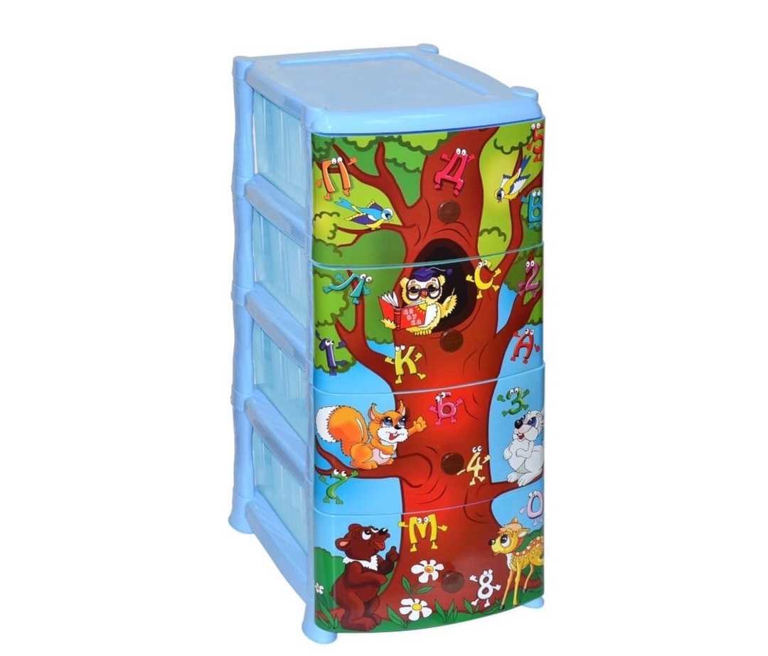 Комод из пищевого пластика с четырьмя выдвижными ящиками предназначен для хранения вещей и продуктов питания и гармонично впишется в интерьер любой комнаты. Легкий и вместительный комод поможет обеспечить порядок, избавит от разбросанных игрушек или одежды, убережет продукты от пыли и заветривания. Передние панели комода декорированы по технологии IML (вплавляемая этикетка) для создания индивидуального стиля. Не рекомендуется размещение пластикового комода вблизи батарей центрального отопления и электрических обогревателей.