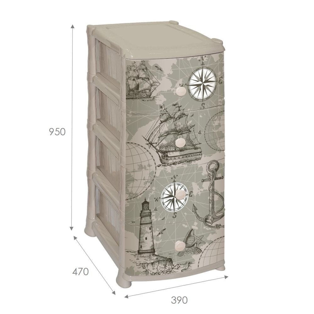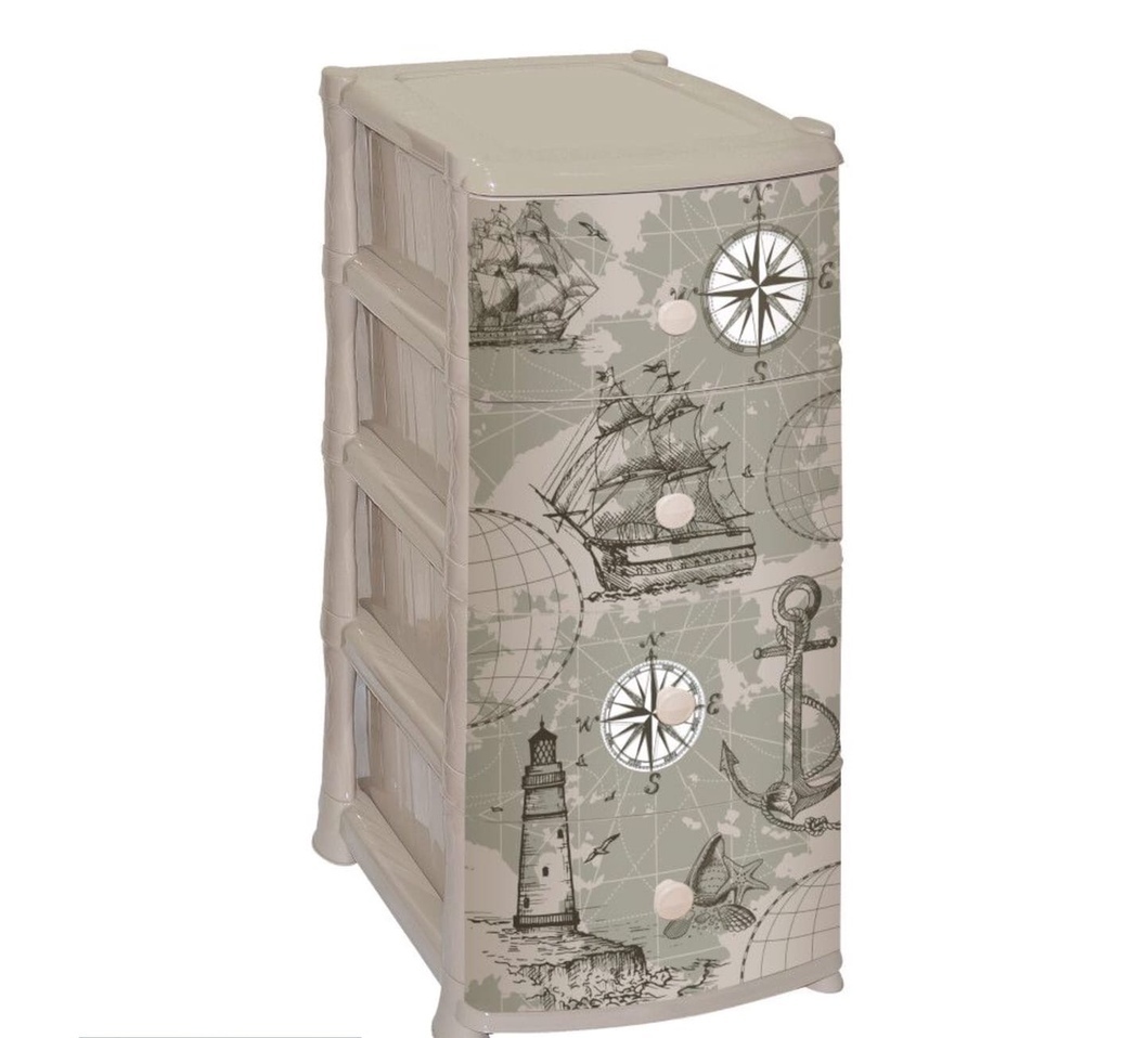 Комод из пищевого пластика с четырьмя выдвижными ящиками предназначен для хранения вещей и продуктов питания и гармонично впишется в интерьер любой комнаты. Легкий и вместительный комод поможет обеспечить порядок, избавит от разбросанных игрушек или одежды, убережет продукты от пыли и заветривания. Передние панели комода декорированы по технологии IML (вплавляемая этикетка) для создания индивидуального стиля. Не рекомендуется размещение пластикового комода вблизи батарей центрального отопления и электрических обогревателей.