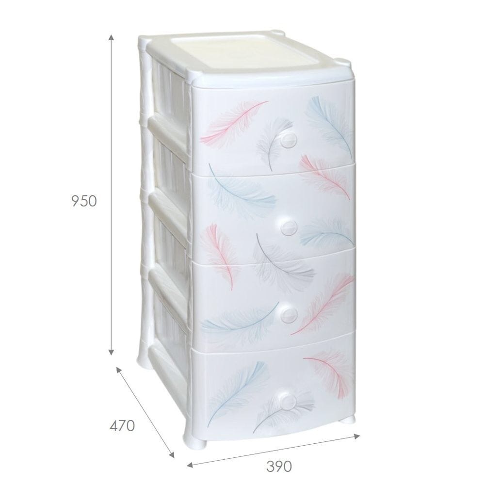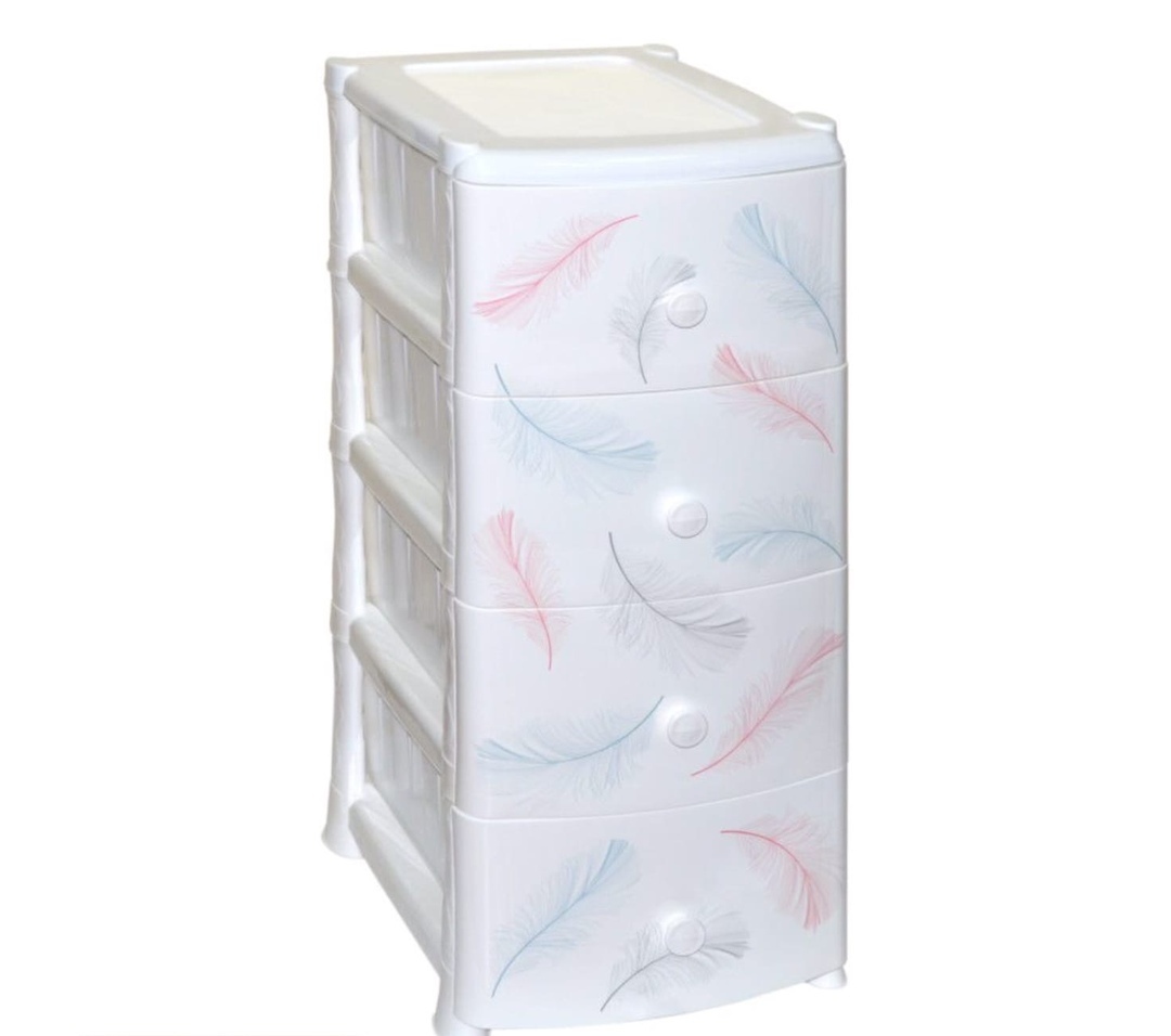 Комод из пищевого пластика с четырьмя выдвижными ящиками предназначен для хранения вещей и продуктов питания и гармонично впишется в интерьер любой комнаты. Легкий и вместительный комод поможет обеспечить порядок, избавит от разбросанных игрушек или одежды, убережет продукты от пыли и заветривания. Передние панели комода декорированы по технологии IML (вплавляемая этикетка) для создания индивидуального стиля. Не рекомендуется размещение пластикового комода вблизи батарей центрального отопления и электрических обогревателей.