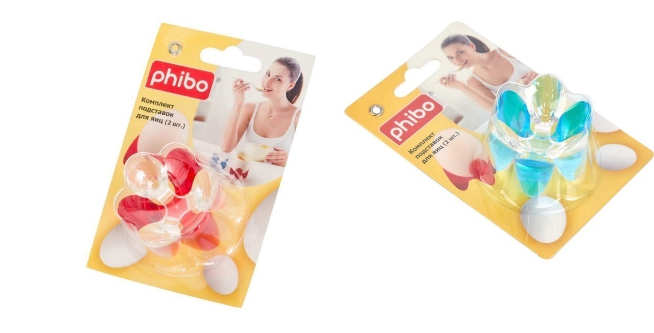 Подставка для яиц Phibo — это стильный элемент сервировки стола. С помощью подставки полакомиться сваренным «всмятку» яйцом будет просто и удобно, не обжигая рук. Более того, предложить яйца в специальных подставках можно всей семье и даже гостям: это будет выглядеть современно и элегантно. Особенности: изготовлена из современного импортного материала; яркое дизайнерское решение — понравится и взрослым, и детям; упаковка — блистер; в комплекте 2 шт.