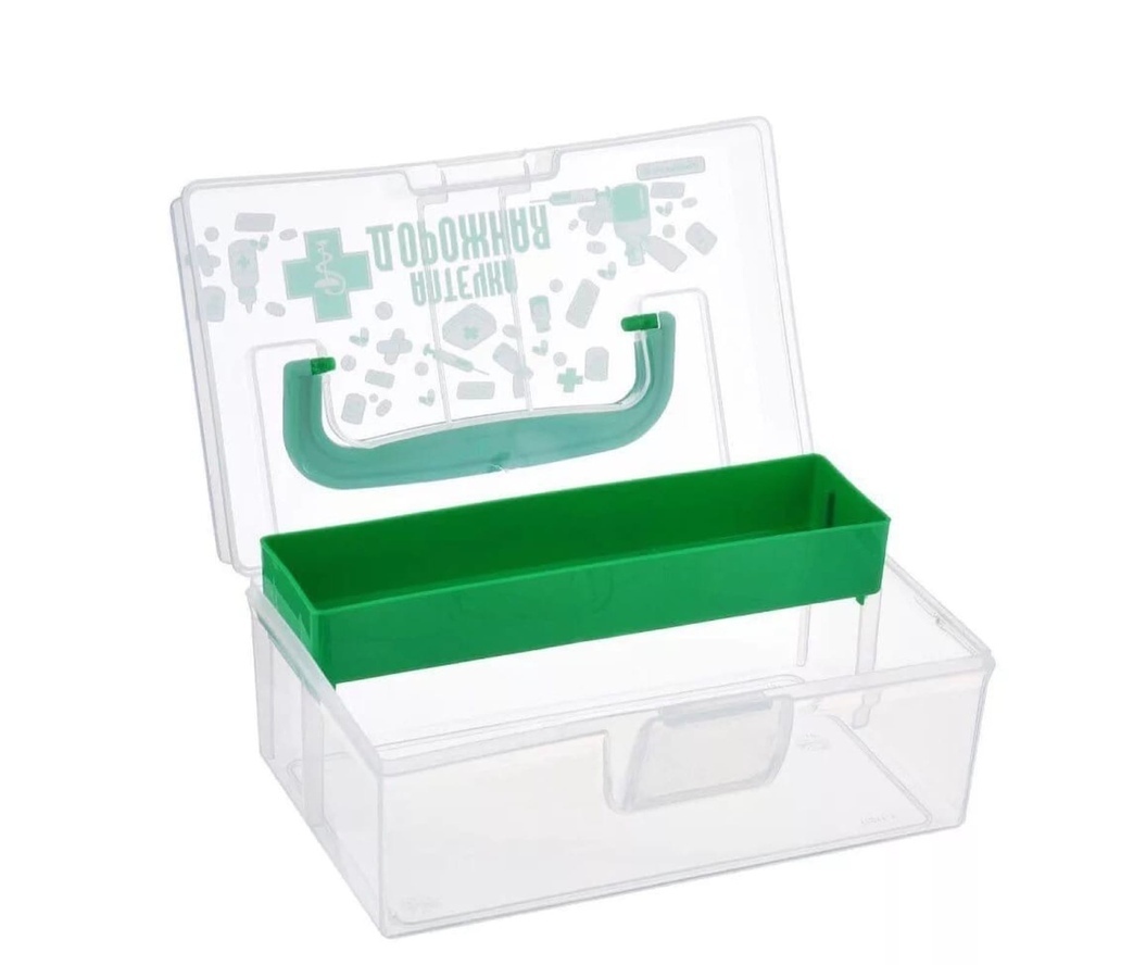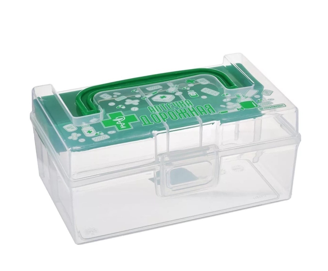 Контейнер Полимербыт "Аптечка дорожная" выполнен из прозрачного пластика.