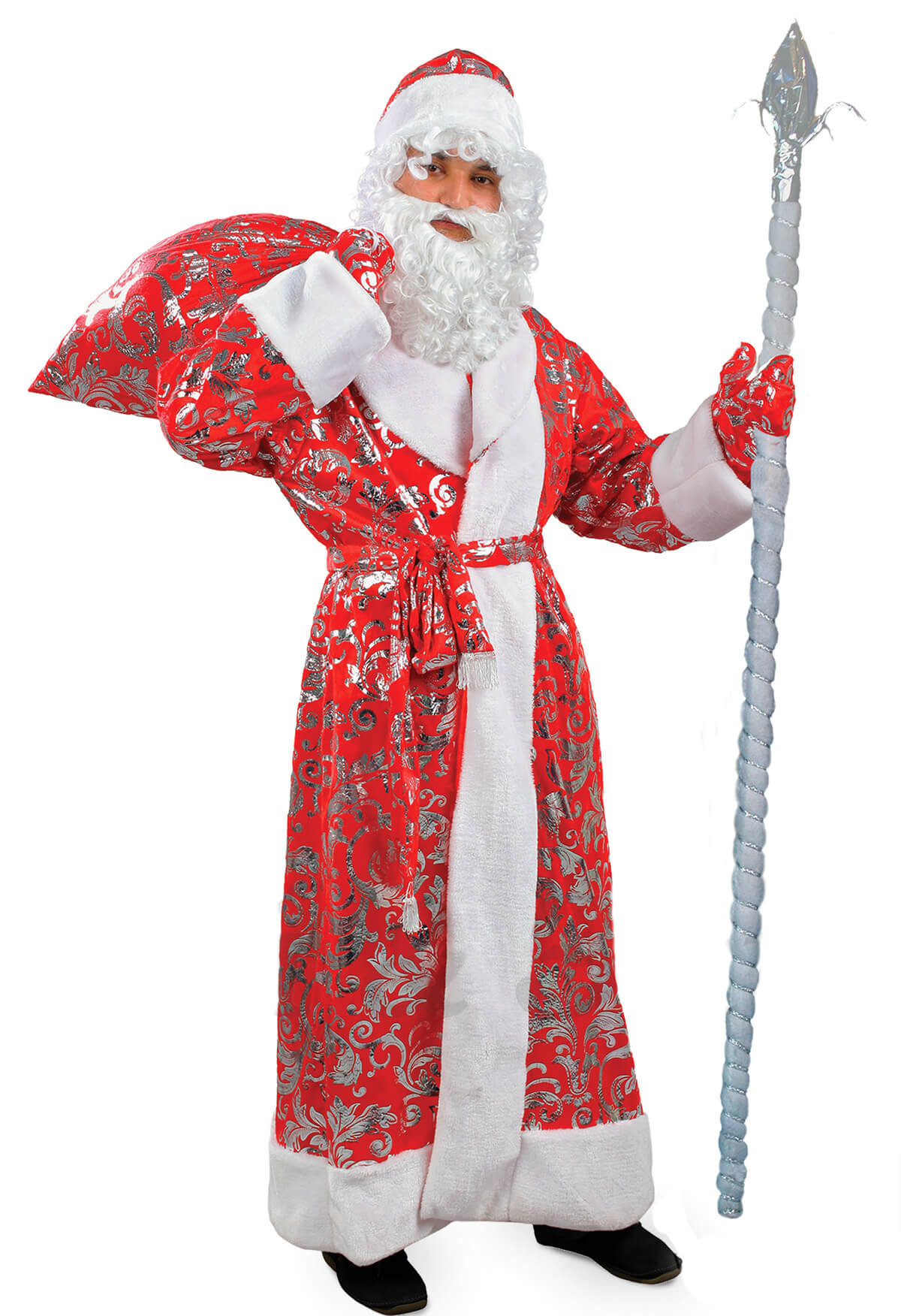 Комплект: шуба, мешок, пояс, шапка, борода и варежки.