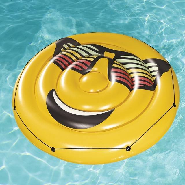 Ваш отдых в бассейне станет по-настоящему комфортным с матрасом Смайл, так как можно удобно лечь на красочный надувной матрас и позагорать. А благодаря позитивному принту насыщенно желтого изделия с забавным смайликом на поверхности обладатель круга станет центром внимания.