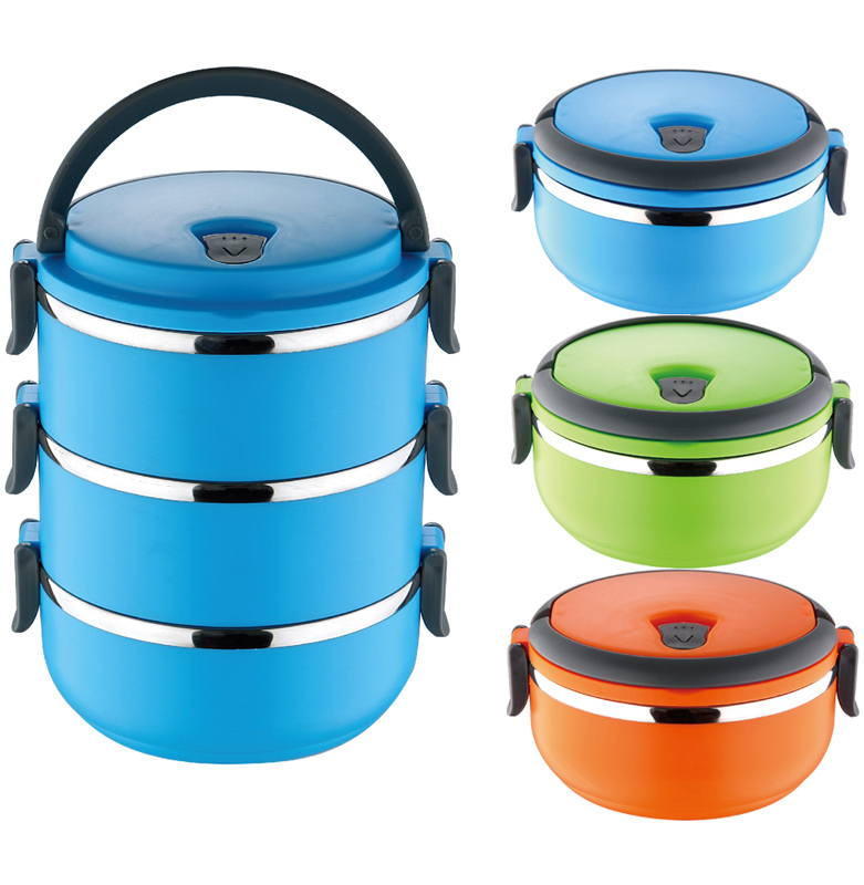 Термо ланч бокс тройной - практичный выбор для активных людей, следящих за своим питанием. Наличие трех отдельных контейнеров позволяет одновременно взять с собой несколько различных блюд. Удобный ланч бокс выполнен из 3 слоев, сохраняет температуру продуктов в течении длительного времени. Специальная прорезиненная окантовка и плотно закрывающиеся клипсы на крышке делают емкость полностью герметичной. Ланч бокс легко переносить благодаря удобным складывающимся ручкам.