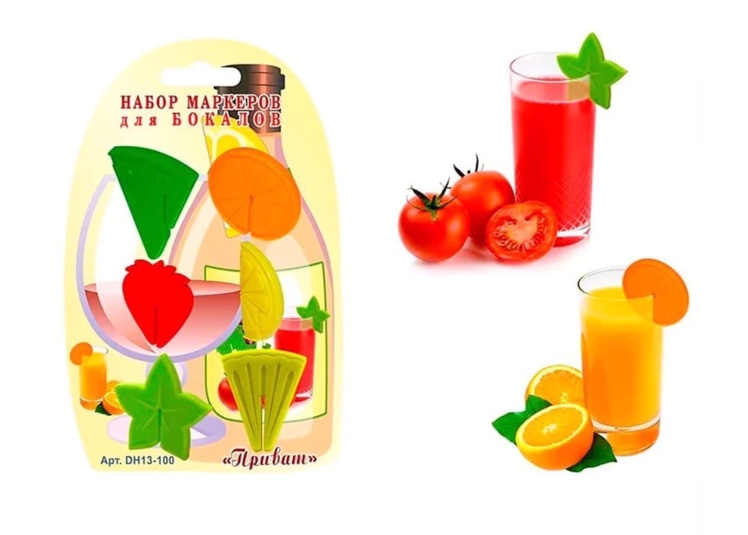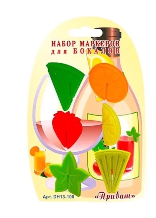 Размер Длина, см 5.0Материал СиликонТип рисунка Без рисункаКоличество предметов 6Вид товара Маркеры для бокалов