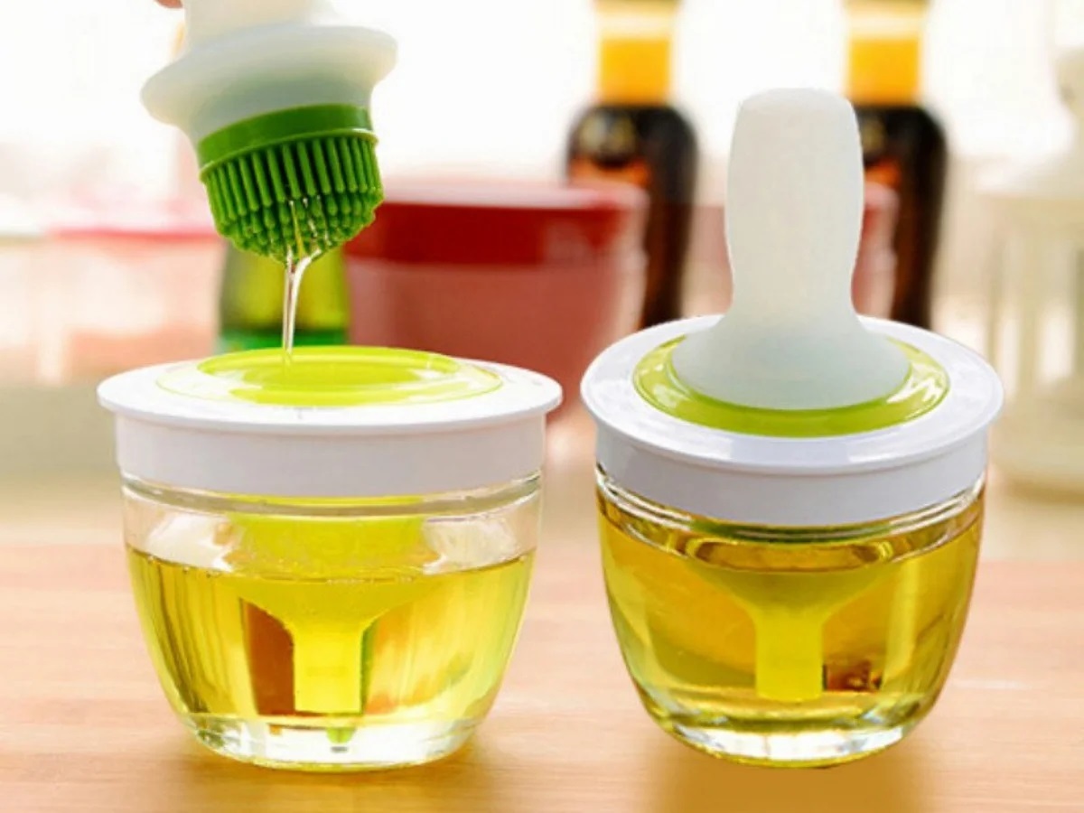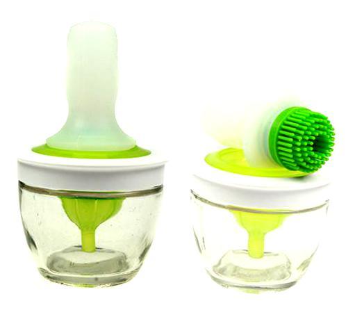 Термостойкая силиконовая кисточка с дозатором, стеклянная масленка.