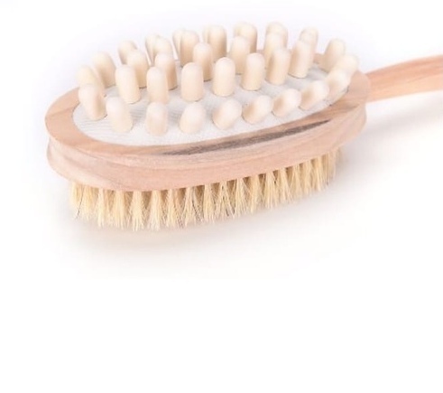 Для чистки верхних слоев кожи подходит обратная сторона щетки. А массажер сделан из материалов, которые не повреждают кожный покров, потому изделие прекрасно подходит даже для обладательниц нежной кожи. Благодаря длинной деревянной ручке, которая очень медленно нагревается, вы можете использовать аксессуар в сильно растопленной бане.