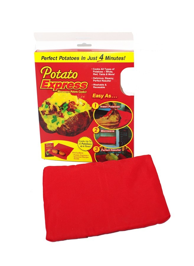 Характеристики Вместительность: 4 картофелины Время приготовления картофеля: 4 минуты Материал: 85% полиэстер, 15% хлопок (подкладка) Размер: 2*21,5*28 см Вес: 120гр Цвет: красный