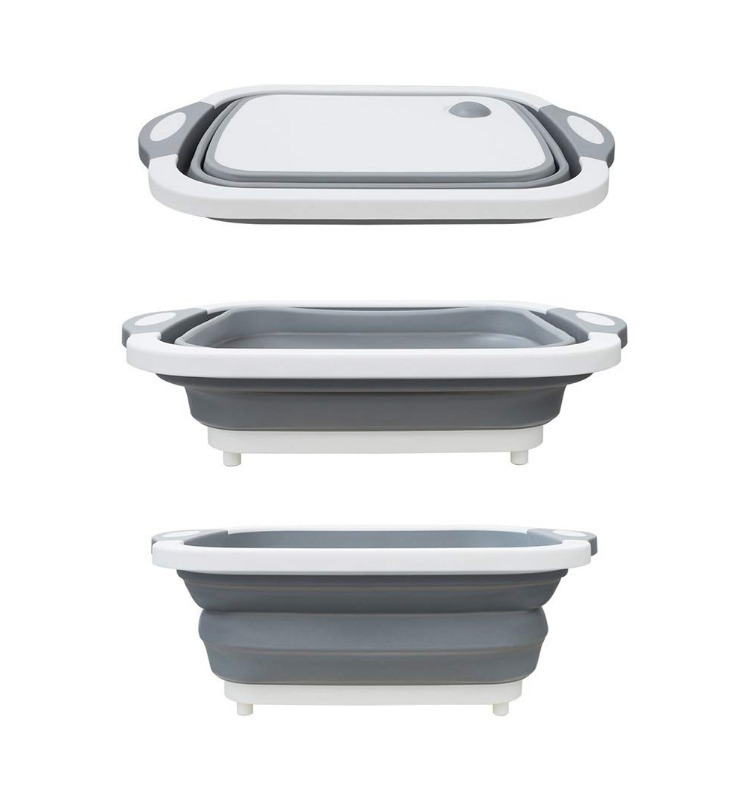 Разделочная доска 3 в 1 это удобство в приготовлении продуктов, мыть, сушить, разделывать и хранить все в одном контейнере. Доска имеет отверстие для слива воды. Стенки контейнера из силикона складываются, превращая контейнер в разделочную доску для нарезания и измельчения продуктов. Просто поместите овощи в контейнер, откройте сливное отверстие, тщательно вымойте продукты и просушите. Сложите стенки контейнера и пользуйтесь доской для измельчения и нарезки. Поднимите стенки, чтобы использовать контейнер для хранения продуктов. Компактный дизайн и универсальность применения делают этот предмет незаменимым на кухне. Доска не занимает много места в шкафу, ее удобно хранить в сложенном состоянии. Экологичные материалы и прочный пластик гарантируют долгий срок службы.
