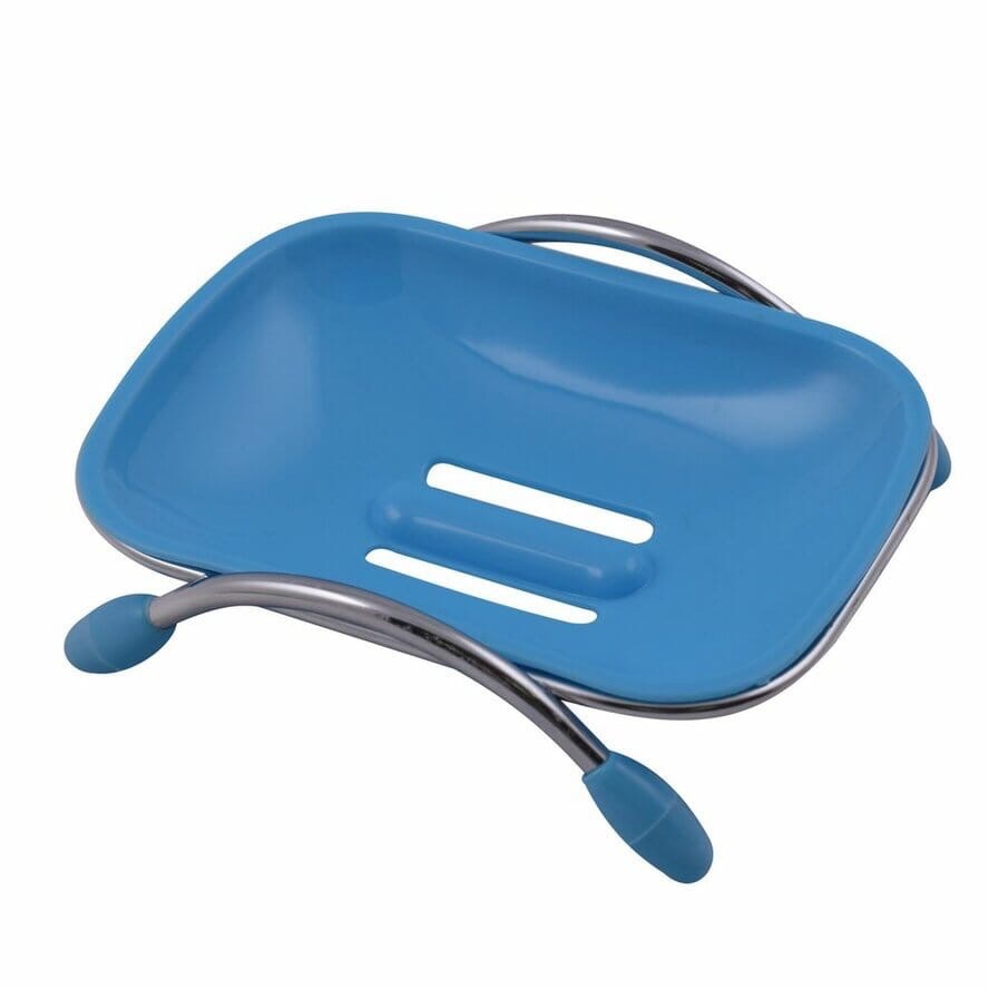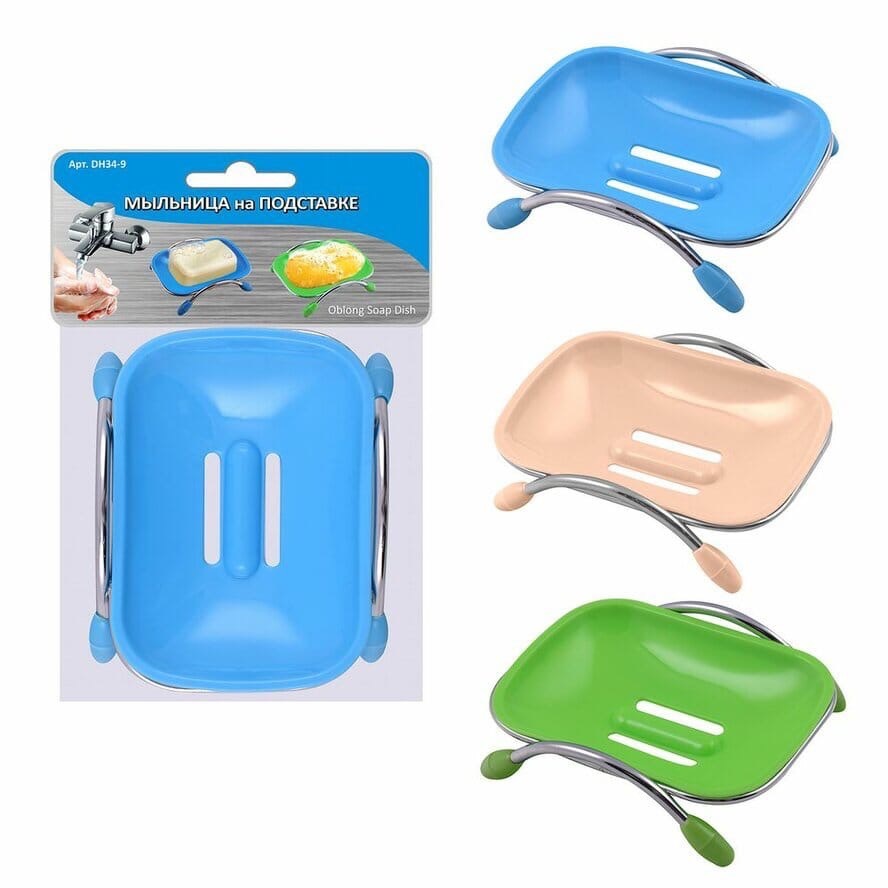 Необходимый аксессуар для хранения мыла в ванной или на кухне — специальная мыльница. Приспособление состоит из двух частей — мыльницы и металлической подставки. Отверстия на дне позволяют стекать лишней влаге, чтобы мыло не размокало. Изделие выполнено в оригинальной форме, подходит к большинству интерьеров. Мыльница выполнена в 4-х вариантах цветов: белом, синем, зеленом и розовом. Изготовлено из пластмассы (полипропилен), основание из металла.