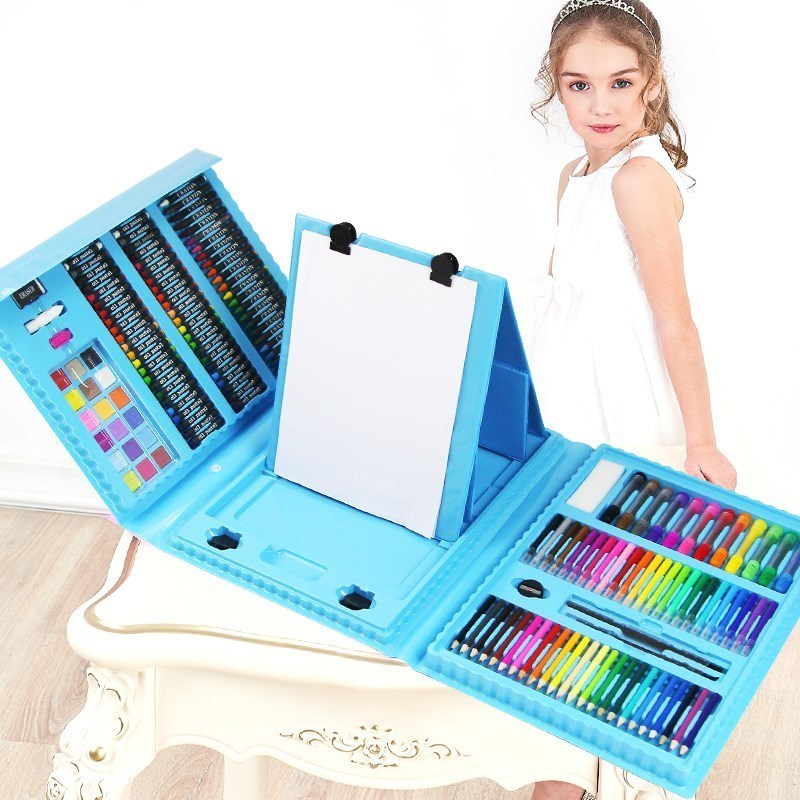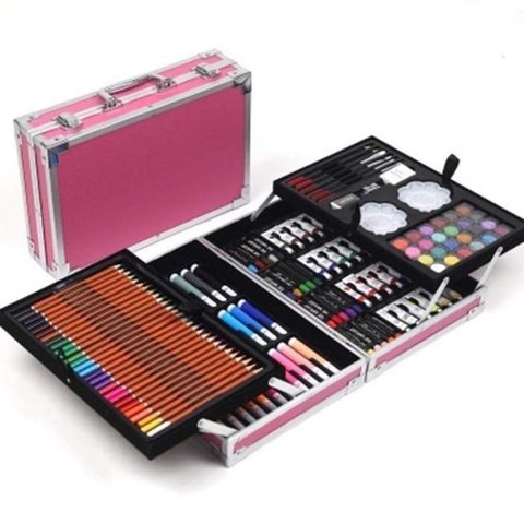 Набор изготовлен в виде чемоданчика и компактно складывается для хранения и транспортировки. Содержит карандаши, фломастеры, краски, восковые мелки и многое другое. Ребенок сможет рисовать все, что только пожелает, разнообразие цветов позволит ему создавать любые картины.
