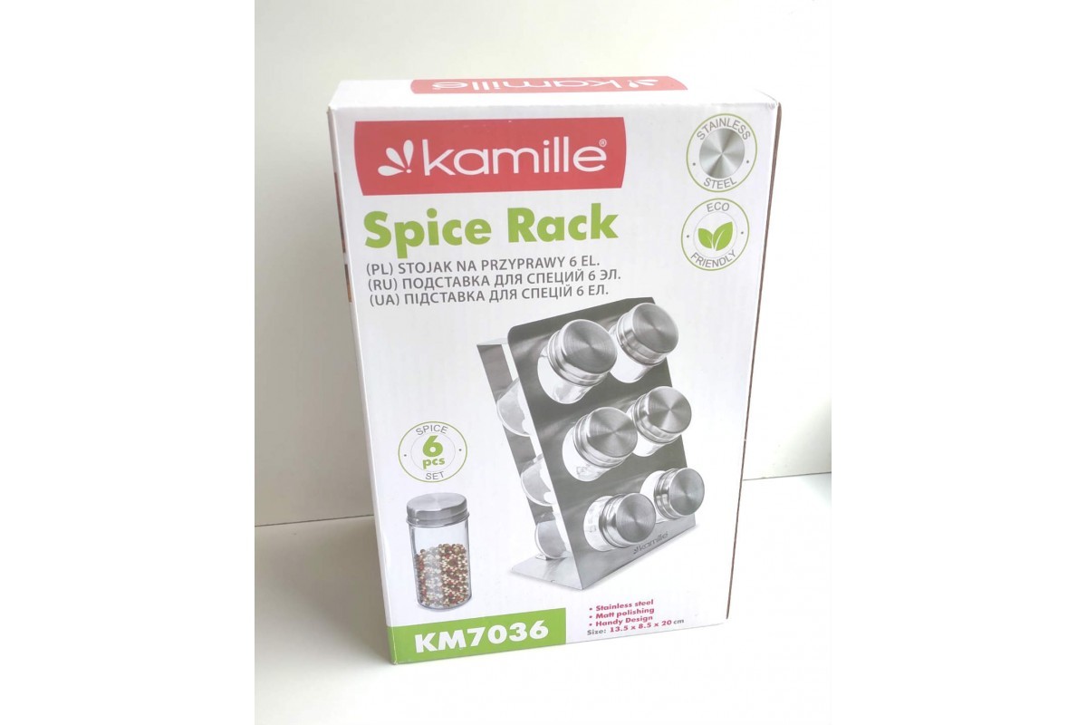 Набор для специй 7 предметов Kamille KM-7036 включает в себя шесть емкостей для специй и стальную подставку. Крышки с прозрачной колбой позволят с легкостью находить нужные специи. Идеально подходит как для домашнего использования, так и для кафе или ресторана. Изящный внешний вид посуды украсит любую кухню.