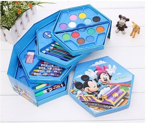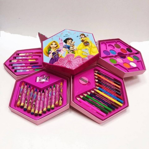 легкий и компактный, раскладывающийся бокс имеющий множество пазов для вложения принадлежностей для рисования все фломастеры и краски аккуратно сложены в боксе удобно брать с собой на занятия, в школу и т.д.стильный и яркий внешний
