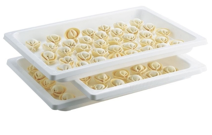 Углубленные прямоугольные подносы очень удобны для заморозки пельменей, мантов, котлет, так как решают вопрос рационального размещения большого количества заготовок. Высокие бортики защищают продукты от случайного падения при выемке из морозильной камеры. На дне изделия имеются рельефные полосы, предотвращающие прилипание продуктов к подносу, после заморозки их легко снять с поверхности.