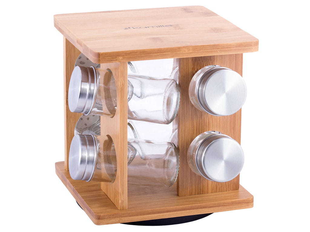 Материал: бамбук, нержавеющая сталь, стекло. Упаковка: цветная картонная коробка 18*18*18,5см.