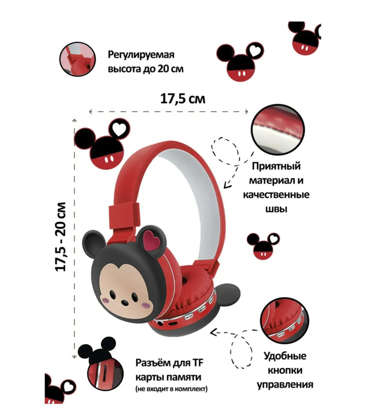 Наушники беспроводные bluetooth детские Микии-Маус (Mickey Mouse) накладные