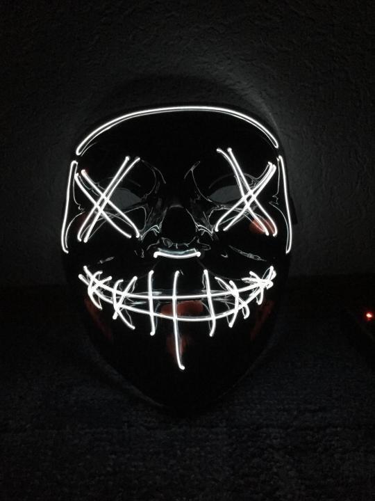 Маска имеет 3 режима подсветки: постоянный свет, медленное и быстрое мерцание.