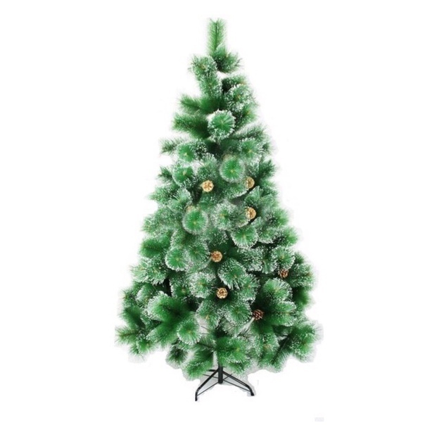 Искусственная сосна является имитацией живого дерева. Каждая из веточек покрыта множеством тончайших хвоинок зеленого цвета. Не слишком переусердствуйте с украшениями, так как создатели уже добавили в образ изюминку – миниатюрные шишки.