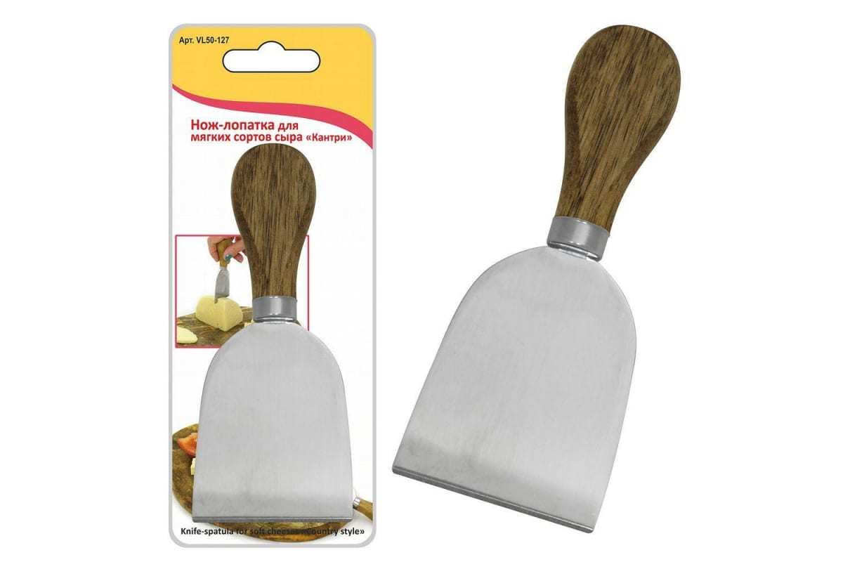 Нож в виде топорика используется для нарезки полутвердых и мягких сыров. Нож выполнен в виде лопатки с лезвием, что очень удобно не только для нарезки, но и для подачи – вы режете сыр и сразу перекладываете его на тарелку. Эргономичная форма ручки и специальное лезвие делают этот процесс быстрым и удобным.