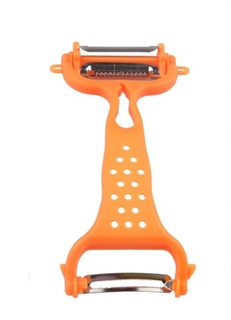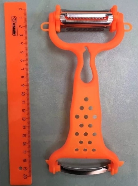 Универсальная овощечистка 6 в 1 предназначена для очистки овощей и фруктов, картофеля. стандартное плоское, зубчатое и лезвие соломка. Чтобы сменить лезвие необходимо просто нажать на кнопку и перевернуть вынимающуюся часть нужной стороной.