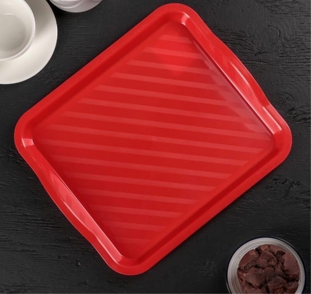 Небольшой поднос классической прямоугольной формы отлично подойдёт для подачи кофе, чая и других напитков или закусок.