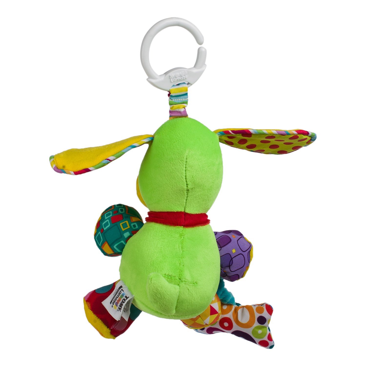 - Кольцо-карабин для подвешивания: разместите игрушку в коляске, кроватке или на игровой дуге.