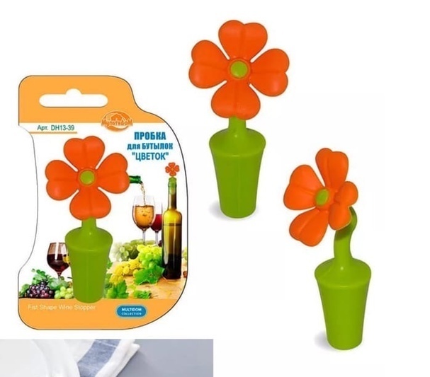 Пробка «Цветок» - стильный и очень полезный аксессуар. Приспособление плотно закупоривает напитки, можно не волноваться за их сохранность.